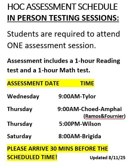 Assessment/STEP Schedule