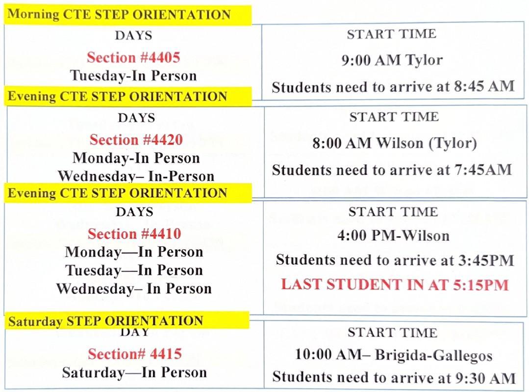 Assessment Schedule/STEP Orientation Schedule